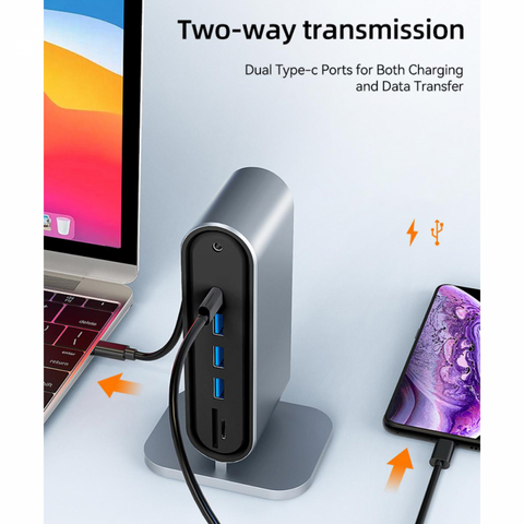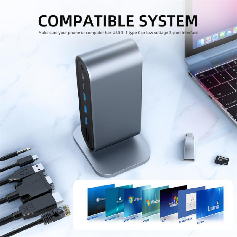 Adapter Type C na LAN Gb, SD card, TF, PD, Type C, 4xUSB 3.0, Audio, HDMI i VGA 12 u 1 sa postoljem