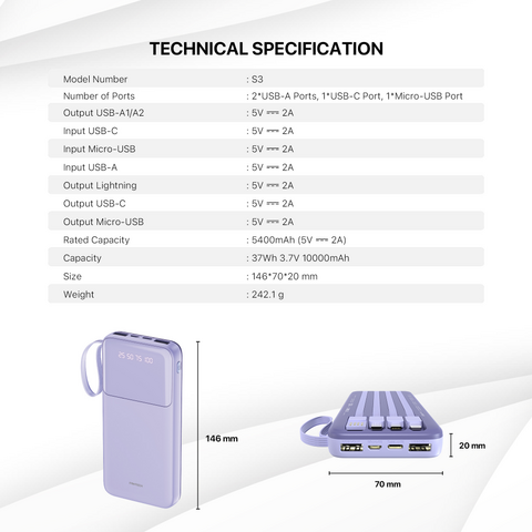 Back Up baterija (univerzalna) Prenosiva baterija Fantech S3 10000mAh, 10W beli