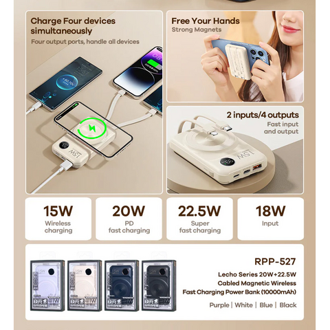Back Up baterija (univerzalna) prenosiva baterija Magsafe REMAX Lecho Series RPP-527 PD 20W + QC 22.5W Fast Charging 10000mAh beli