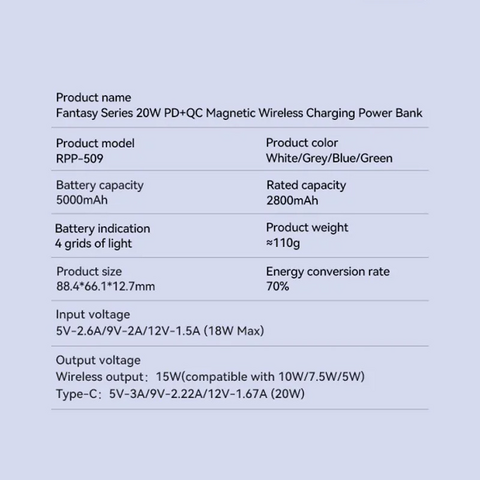 Back Up baterija (univerzalna) prenosiva baterija Magsafe REMAX RPP-509 Fantasy Series PD 20W + Wireless 15W Fast Charging 5000mAh beli