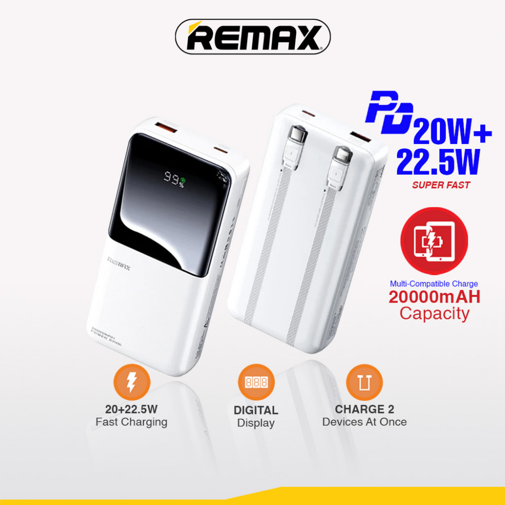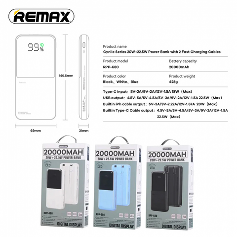 Back Up baterija (univerzalna) prenosiva baterija REMAX Cynlle Series RPP-680 PD 20W+QC 22.5W 20000mAh beli