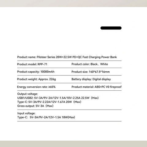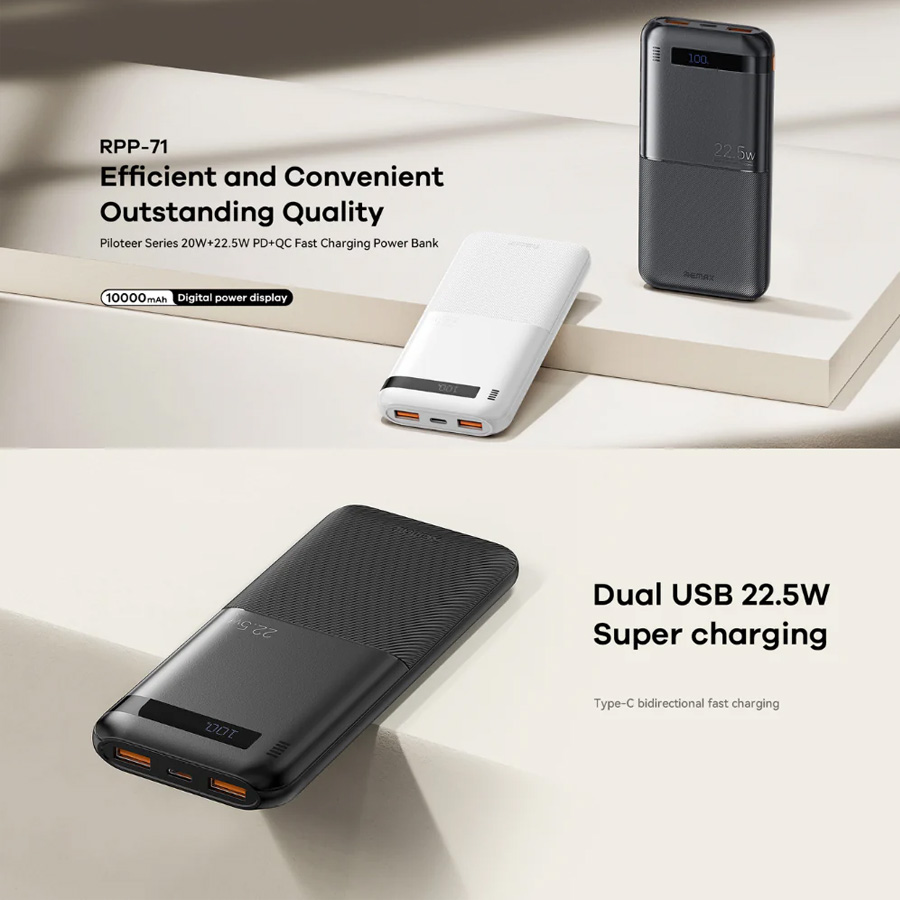 Back Up baterija (univerzalna) prenosiva baterija REMAX Piloteer Series RPP-71 20W+22.5W Fast Charging 10000mAh crni