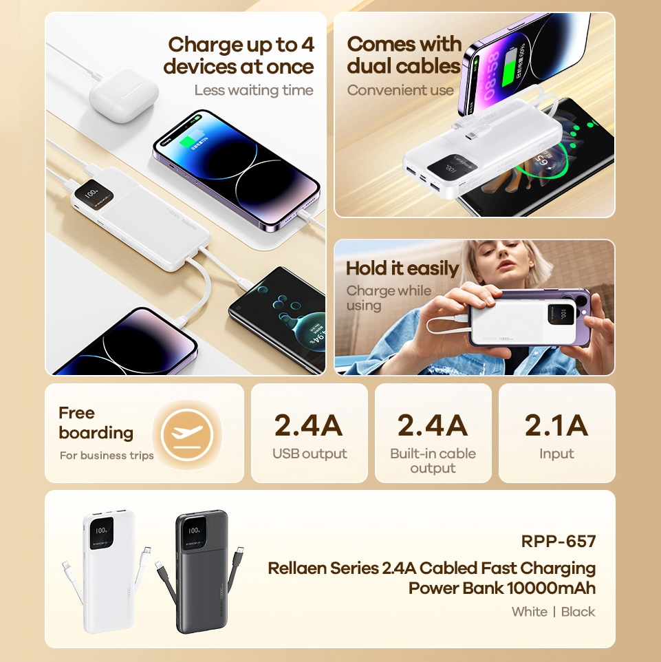 Back Up baterija (univerzalna) prenosiva baterija REMAX Rellaen series RPP-657 2.4A 10000mAh crna