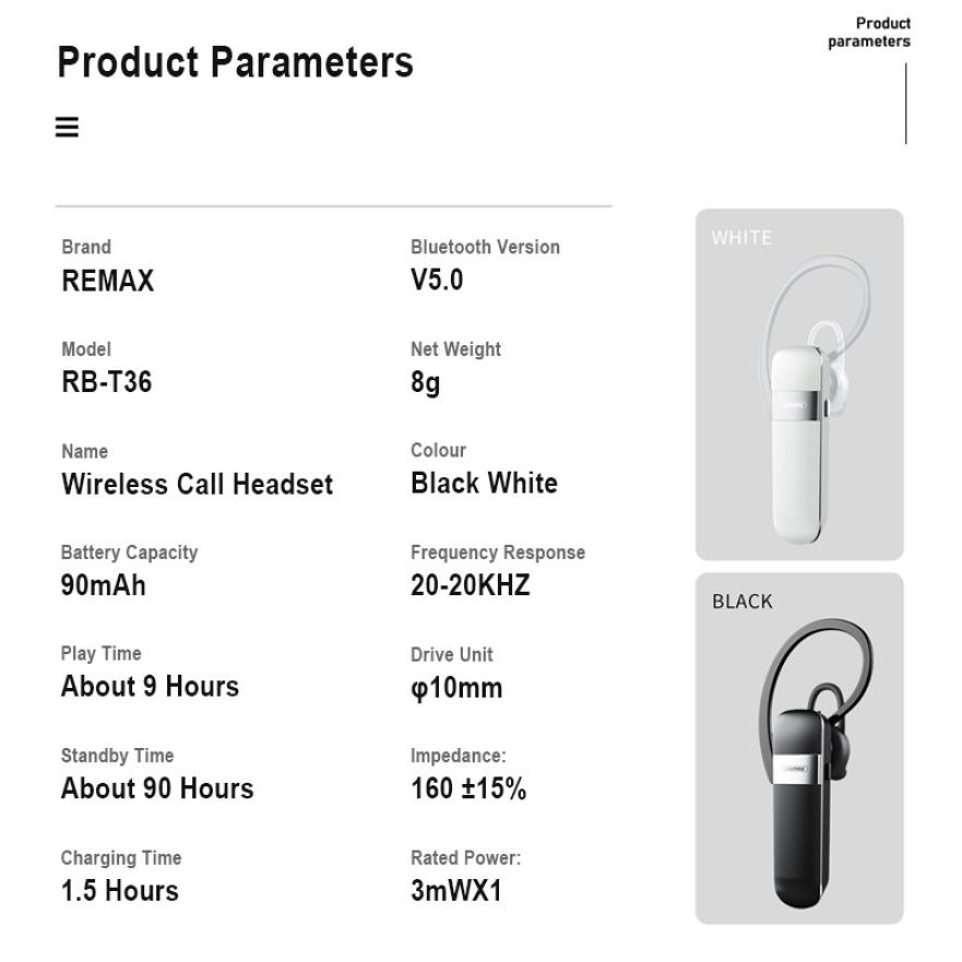 Bluetooth slusalica REMAX RB-T36 crna