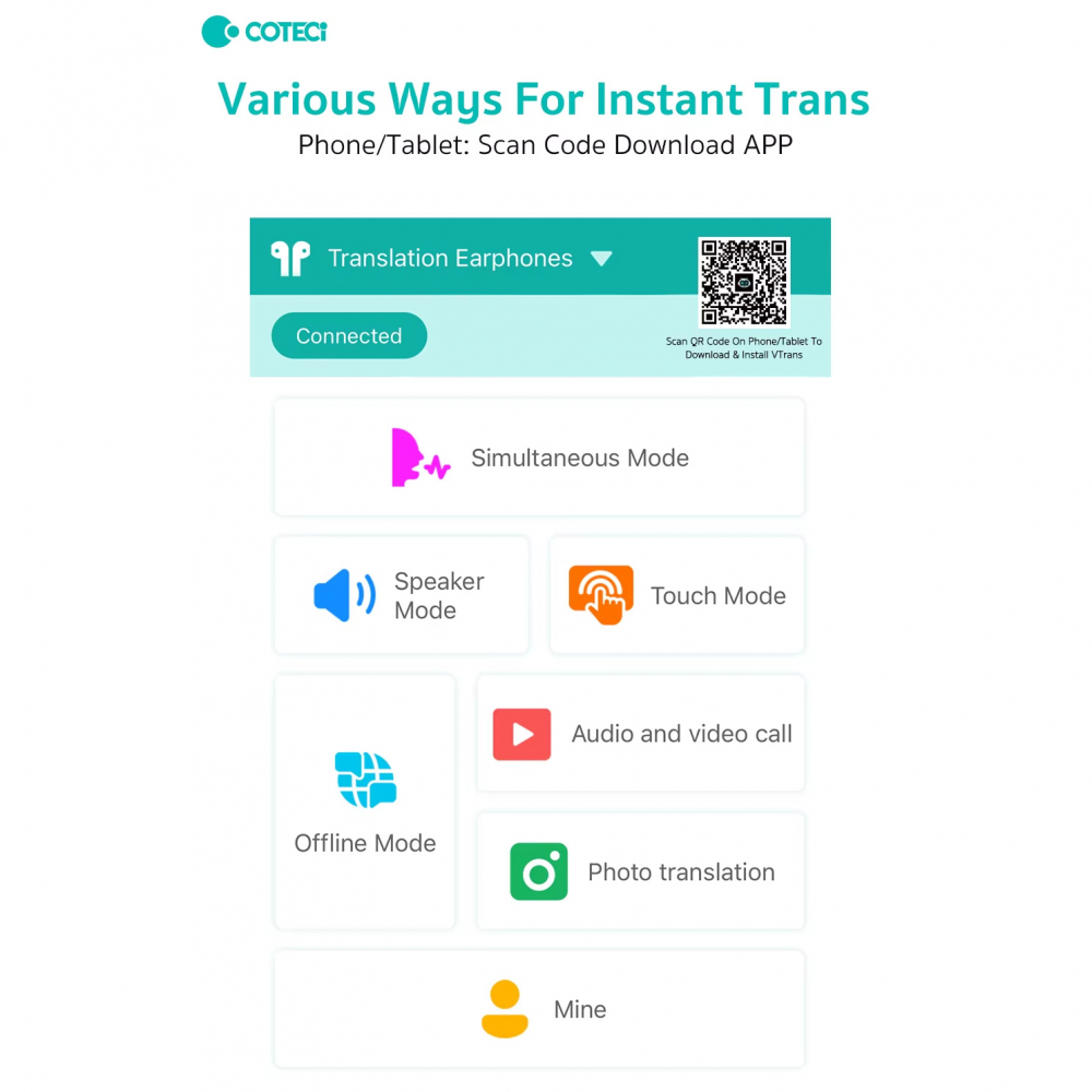 Dodatne karakteristike: Režim konsekutivnog prevođenja / Režim zvučnika / Kontrola dodirom / Video poziv / Oflajn režim / Režim prevođenja fotografija