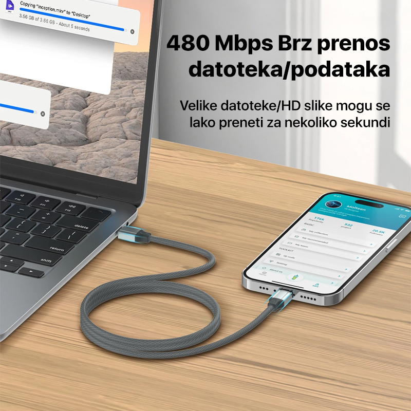 Data kabl LDNIO LC442C 100w, Type C na Type C sivi 2m