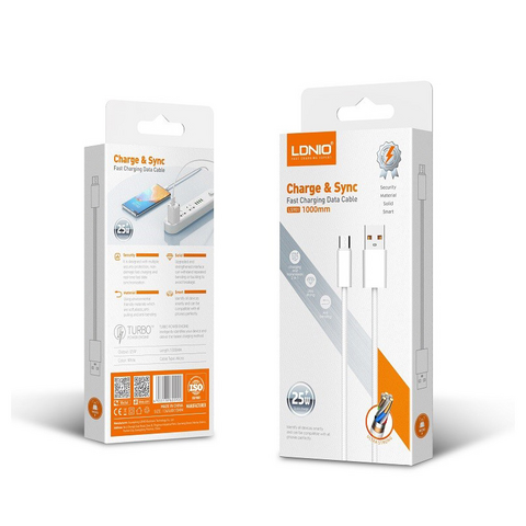 Data kabl LDNIO LS901 25W Fast micro USB beli 1m