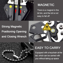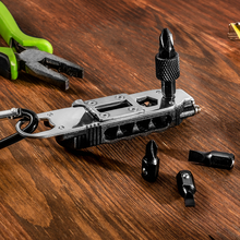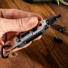 LED lampa privezak, otvarac - flase, univerzalni kljuc sa razbijacem stakla i srafcigerima, crna