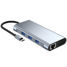Adapter Type C na LAN Gb, SD card, TF, Type C, 4xUSB 3.0, Audio, HDMI i VGA 11 u 1 20cm kabl
