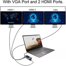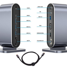 Adapter Type C na LAN Gb, Wireless PC, SD card, TF, Type C, 3xUSB 3.0, 2xUSB 2.0, Audio, 2xHDMI i VGA 14 u 1 20cm kabl