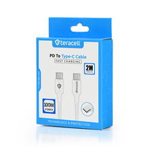 Data kabl Teracell Plus 100W PD Type C na Type C beli 2m