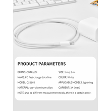 Data kabl Coteci CS2165 3A PD na iPhone lightning beli 1m