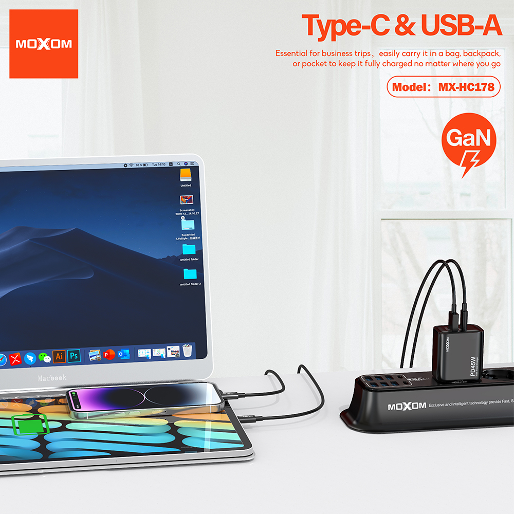 Kuciste punjaca Moxom MX-HC178 GaN USB+Type-C QC 18W PD 45W crno (MS)
