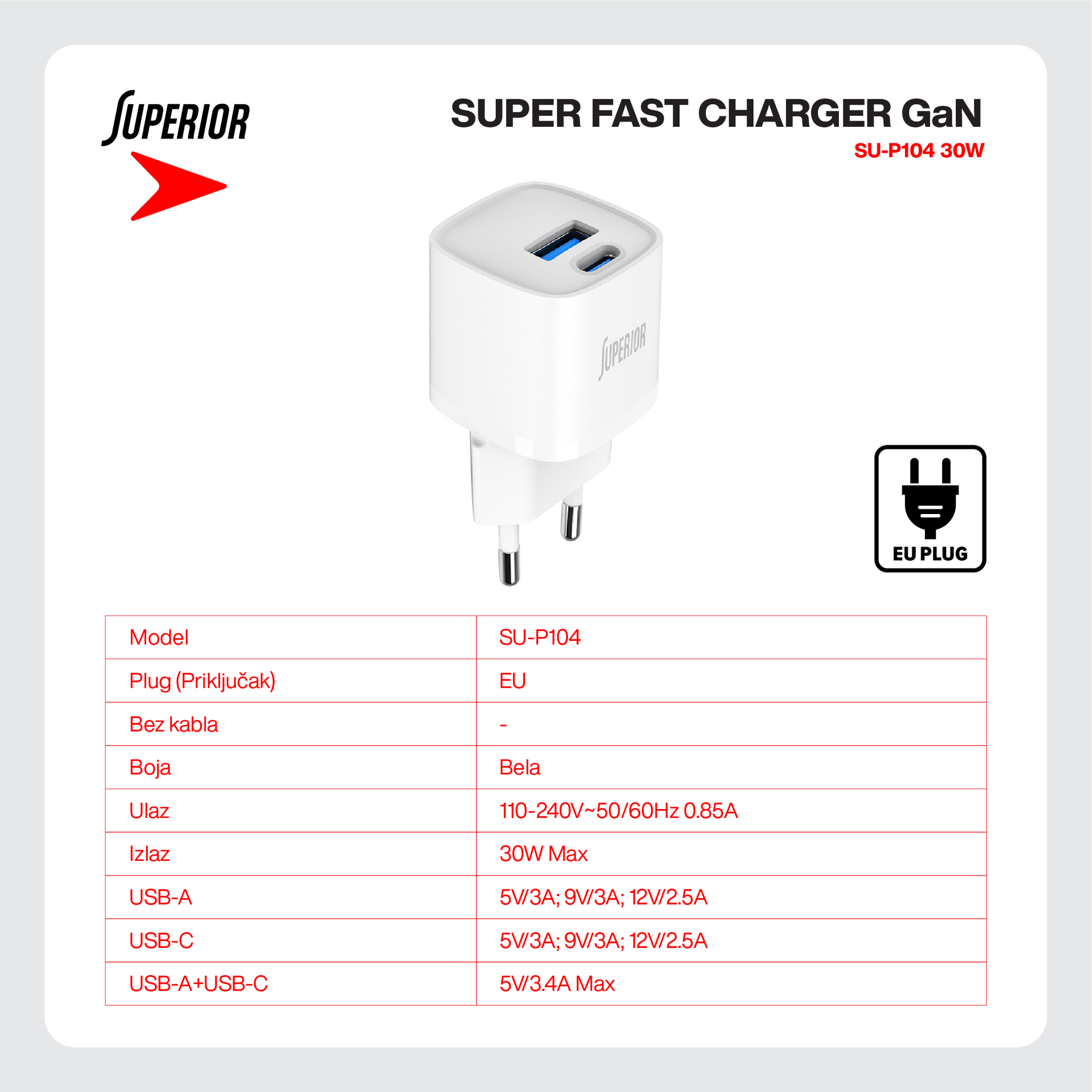 - Ulaz: 110-240V~50/60Hz 0.85A