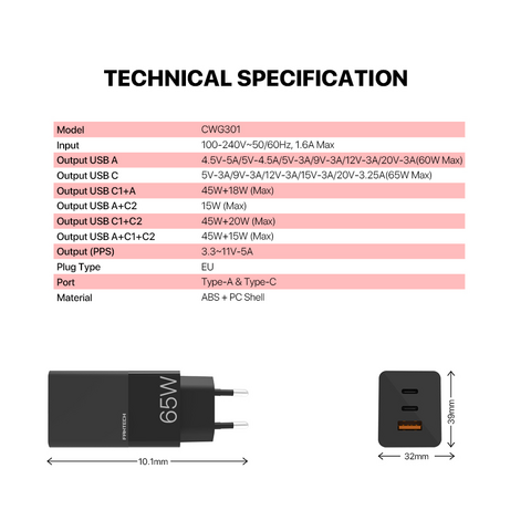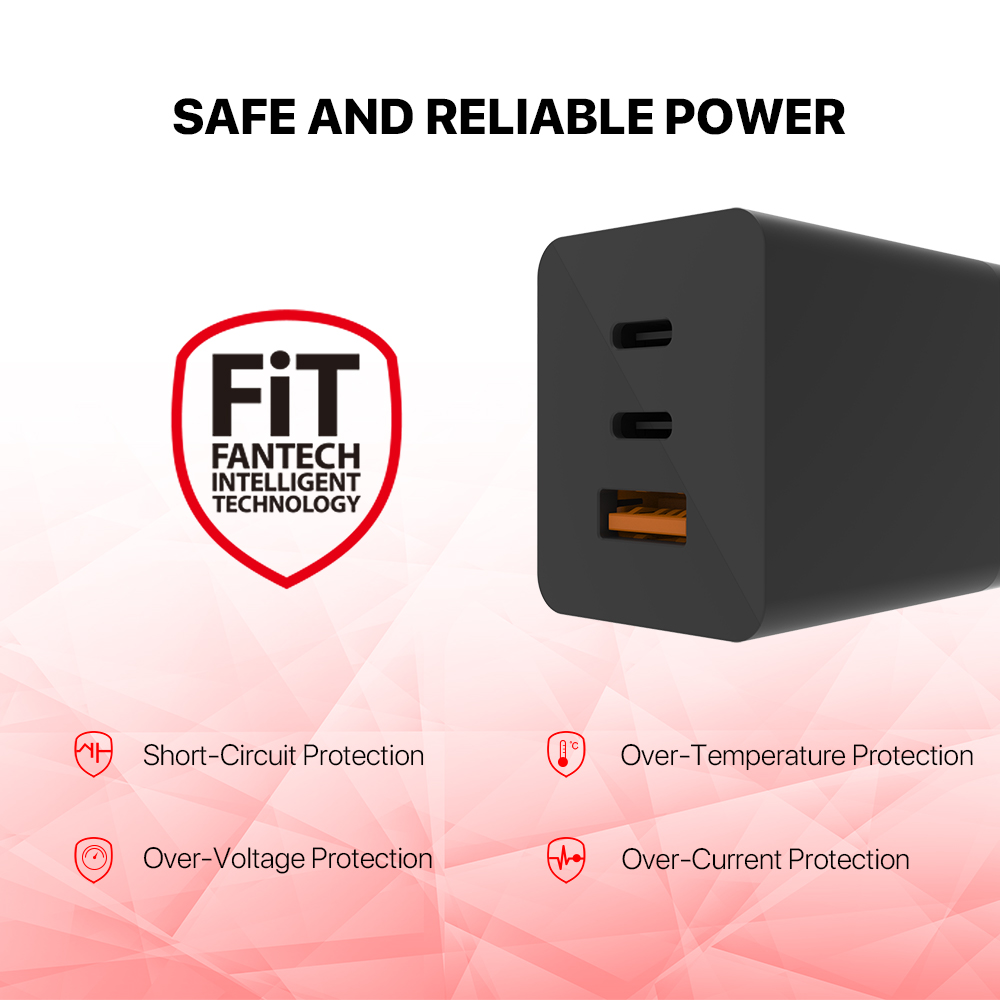Kucni punjac Fantech CWG301 2xPD + QC 65W crni
