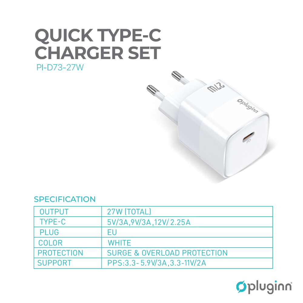 Kucni punjac Pluginn PI-D73-27w, PD 3.0, PPS, 27W sa PD iPhone lightning kablom beli CE