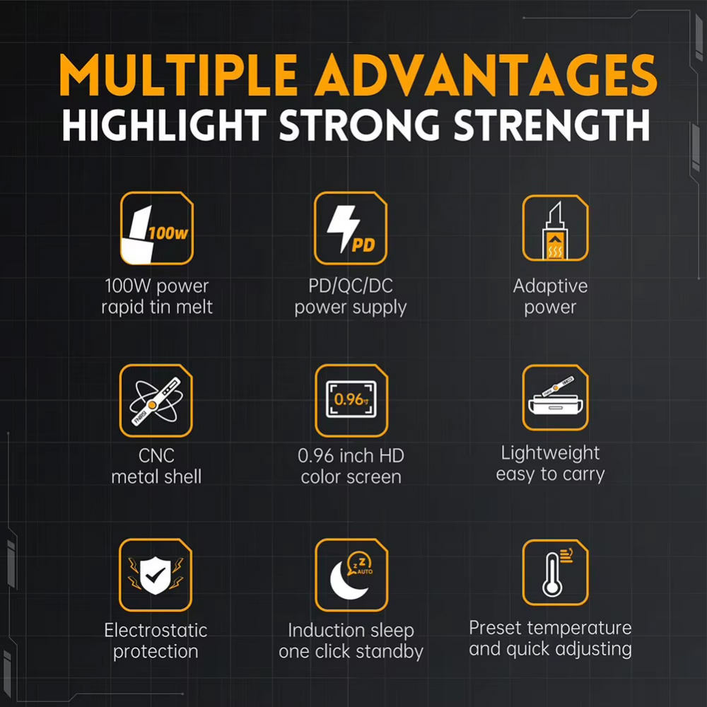 PD/QC/DC: Višestruki režimi napajanja, maksimalna snaga 100W, lako rukovanje velikim i malim lemnim spojevima.