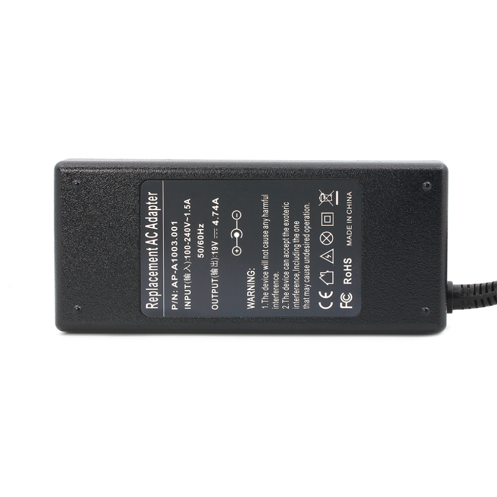 Adapter za laptop kompatibilan sa modelima:Asus, Acer, Dell, Fujitsu, HP, MSI, Lenovo, Samsung, Sony, ToshibaSpecifikacija:19V 4.74ASnaga: 90WVoltaža: 19VAmperaža: 4.74ATip konektora: 5.5*2.5AC EU strujni kabl: 1.2MDC kabl: 1.5m5.5x2.5