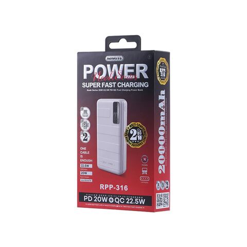 REMAX Noah Series PD20W+QC22.5W Fast Charging Back Up baterija (univerzalna) 20000mAh RPP-316 beli (MS)