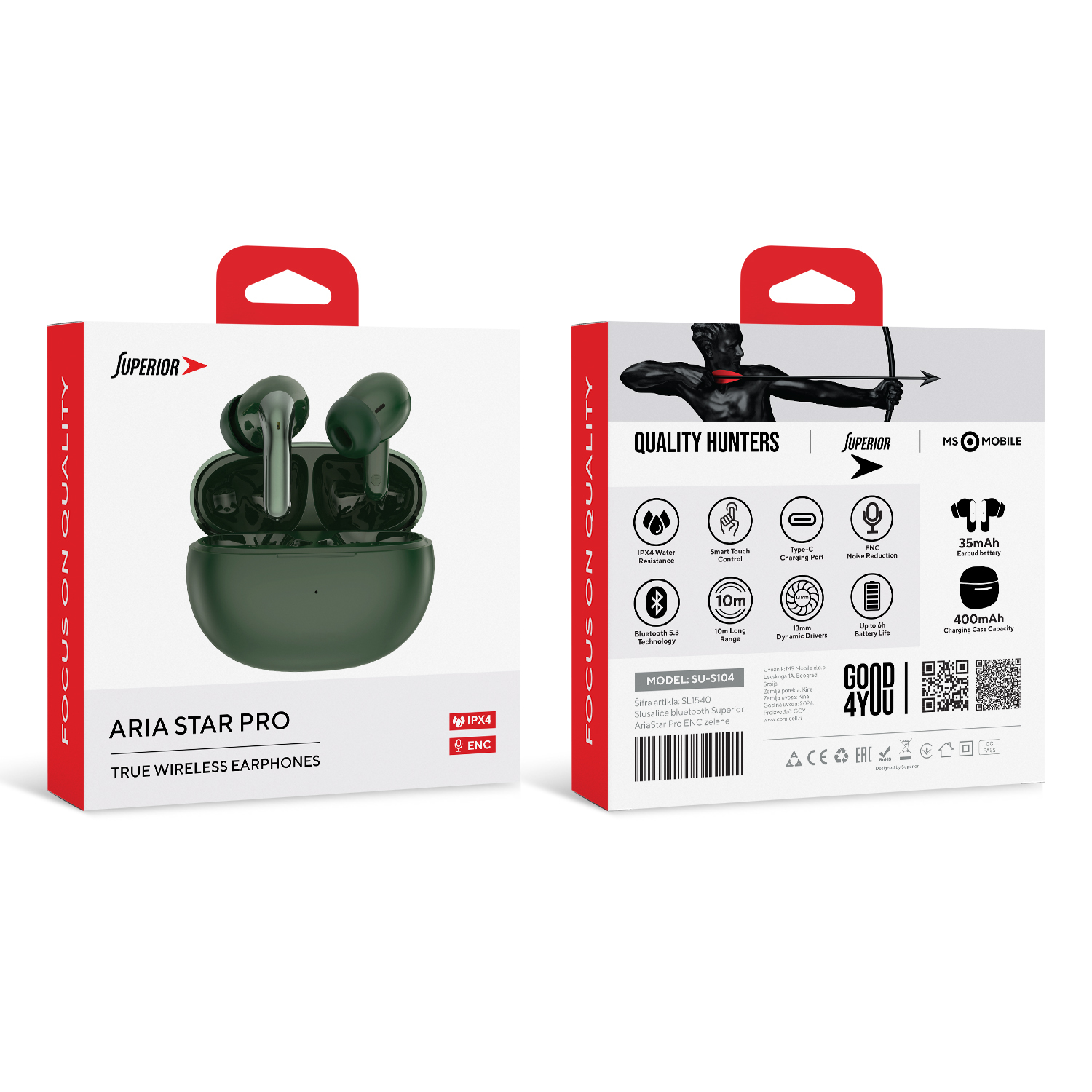 Slusalice bluetooth Superior AriaStar Pro ENC zelene (MS)