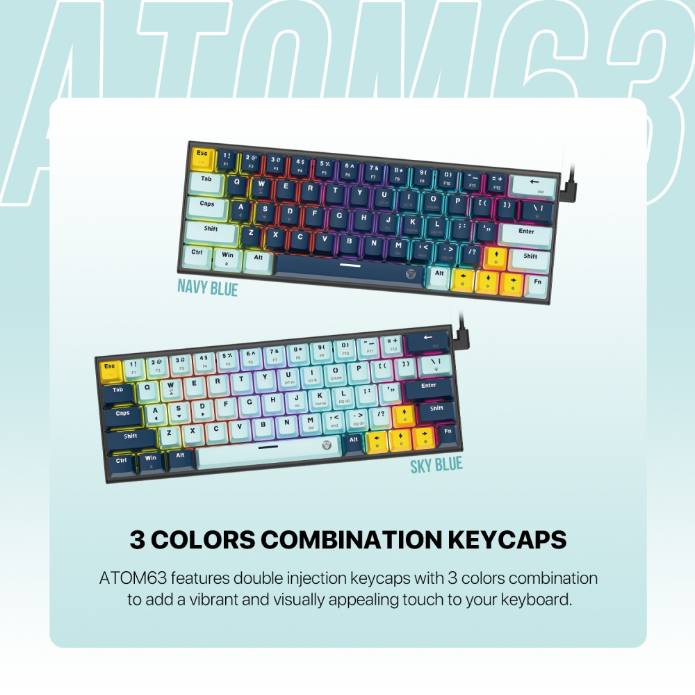 Tastatura Mehanicka Gaming Fantech MK874V2 RGB Atom 63 Mizu Navy (taro switch)