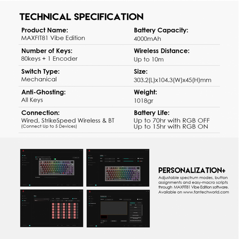 Tastatura Mehanicka Gaming Fantech MK910 RGB Vibe Maxfit 81 Vibrant Utility Wireless (Yellow switch)