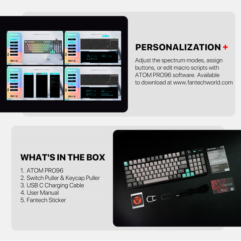 Tastatura Mehanicka Gaming Fantech MK914 RGB Atom PRO96 Wireless Saturn (blue switch)