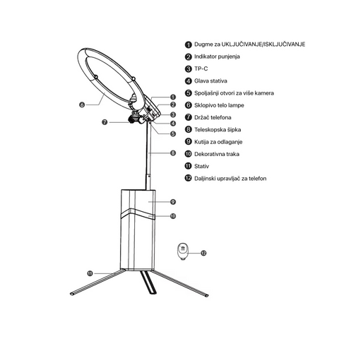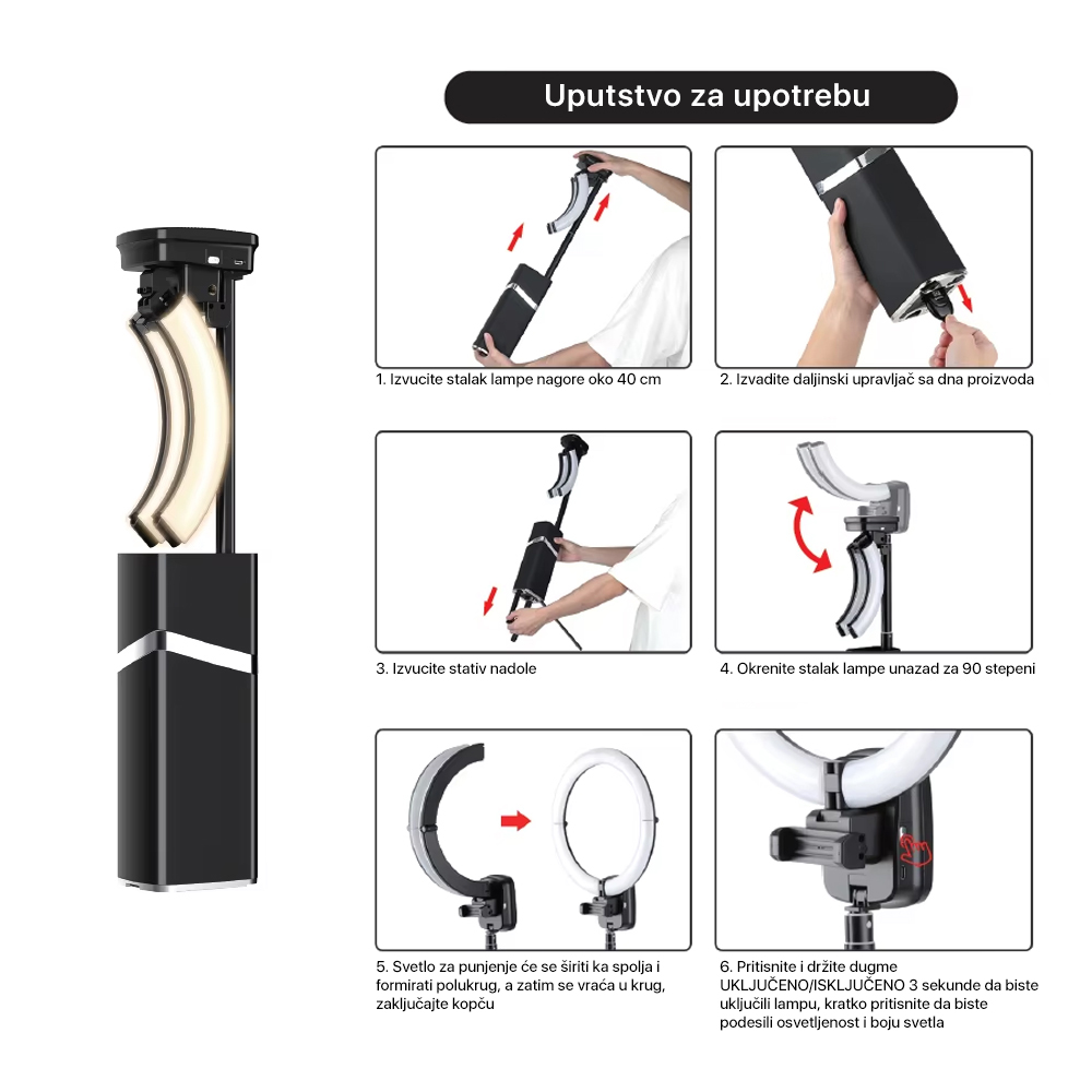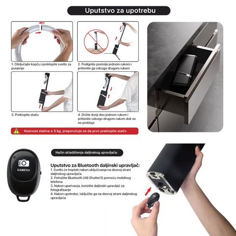 Sklopiv i prenosiv dizajn: Kompaktan dizajn ove sklopive ring lampe olakšava nošenje, savršen za kreatore sadržaja u pokretu.