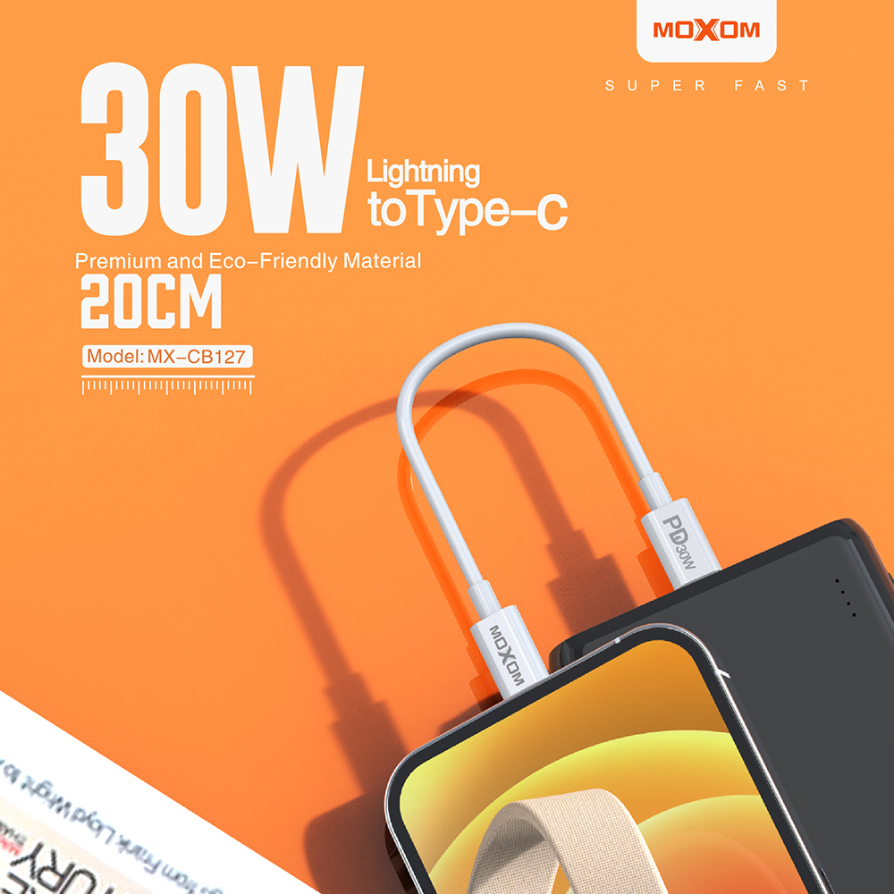 USB data kabl Moxom MX-CB127 Type C na Lightning PD 30W 20cm beli (MS)