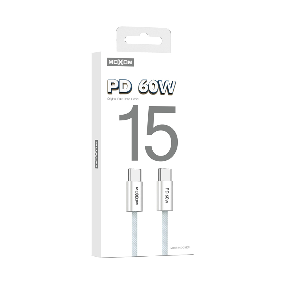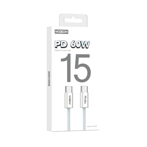 USB data kabl MOXOM MX-CB238 PD 60W Type-C na Type-C beli (MS)