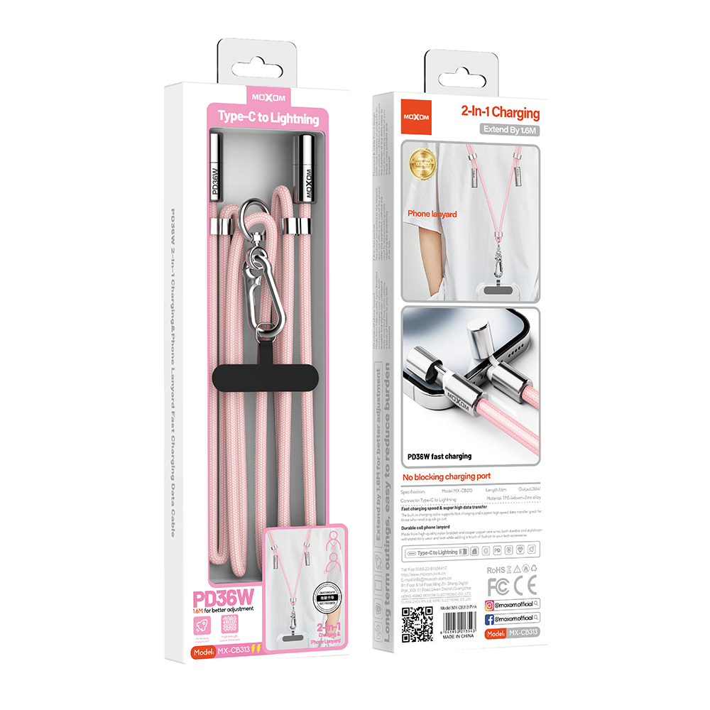 USB data kabl Moxom MX-CB313 Type-C to Lightning strap pink (MS)