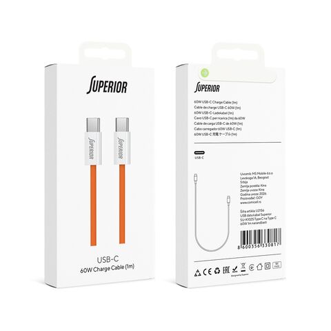 USB data kabl Superior SU-K1025 Type C na Type C 60W 1m narandžasti (MS)