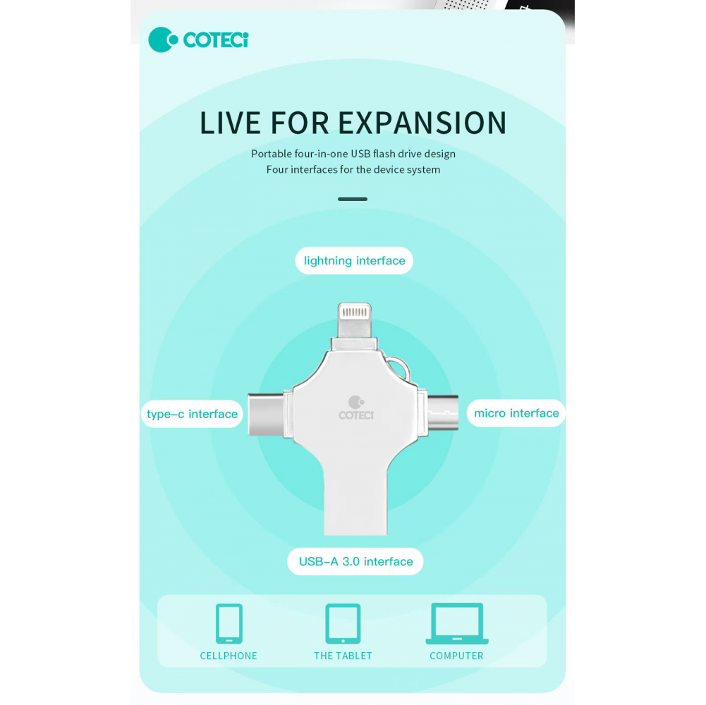 USB flash memorija Coteci CS8836 64GB USB 3.0/micro USB/Type C/lightning
