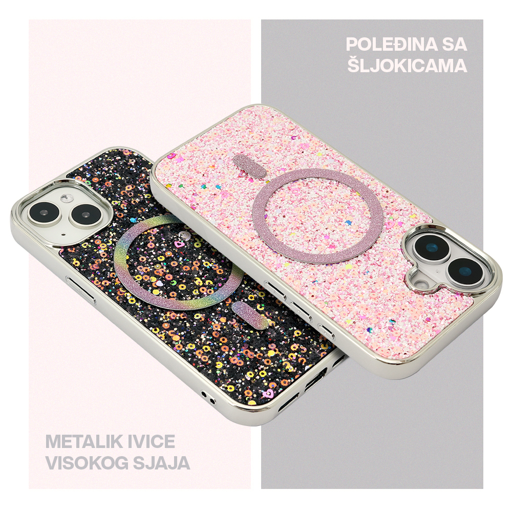 Zastitna futrola GLAM GLOW MagSafe - iPhone 16e/17e (6.1) srebrna (MS)