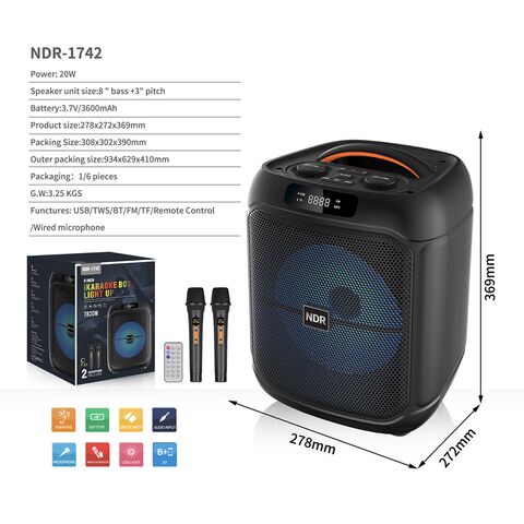 Funkcije: USB, TF kartica, Bluetooth (BT), FM radio, TWS povezivanje, daljinski upravljač, 2 x mikrofon